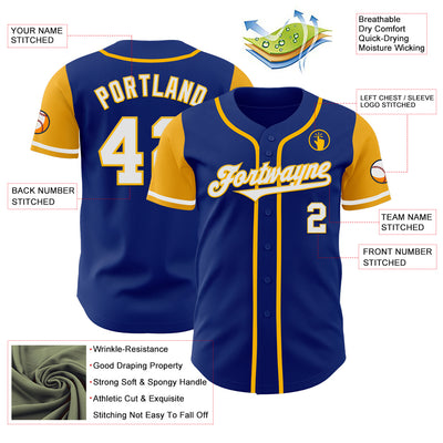 Custom Royal White-Gold Authentic Two Tone Baseball Jersey