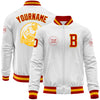 Custom White Red-Gold Bomber Varsity Letterman Zipper Jacket