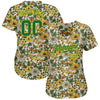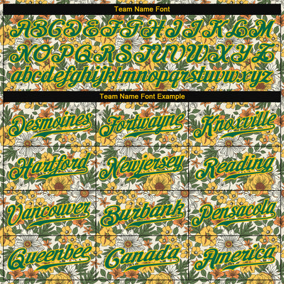 Custom White Kelly Green-Gold 3D Pattern Design Flowers Authentic Baseball Jersey