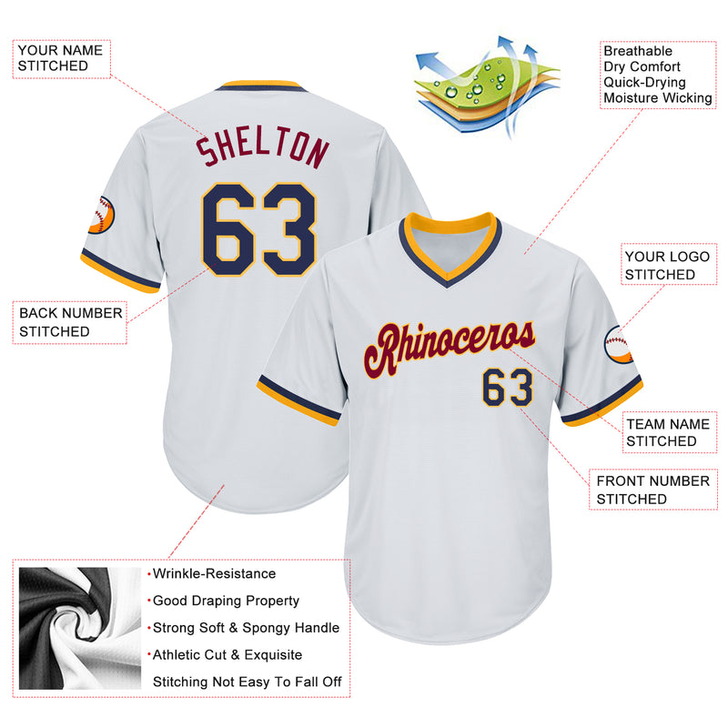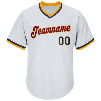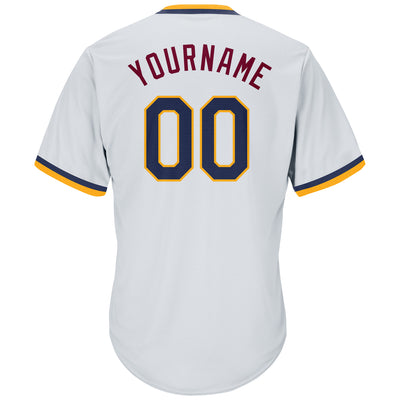 Custom White Navy-Gold Authentic Throwback Rib-Knit Baseball Jersey Shirt