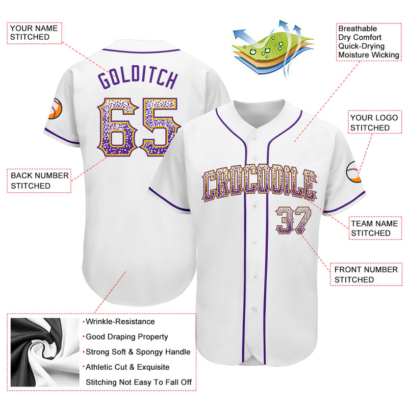 Custom White Purple-Gold Authentic Drift Fashion Baseball Jersey