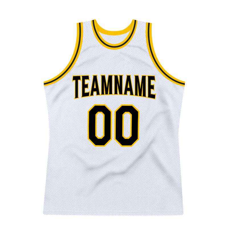 Custom White Black-Gold Authentic Throwback Basketball Jersey