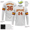 Custom White Crimson-Gold Long Sleeve Performance T-Shirt