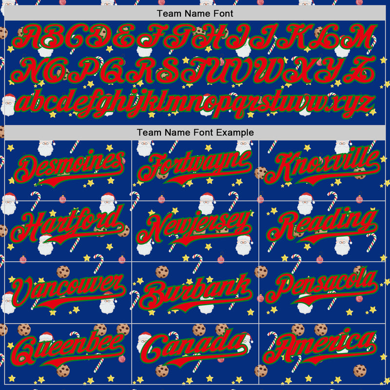 Custom Royal Fire Red-Grass Green 3D Pattern Design Christmas Foodie Food Snack Chocolate Cookie Candy Cane Authentic Baseball Jersey