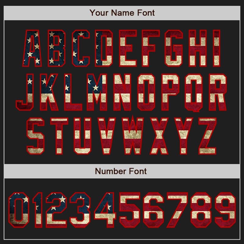 Custom Black Vintage USA Flag Gray-Red Authentic Split Fashion Baseball Jersey