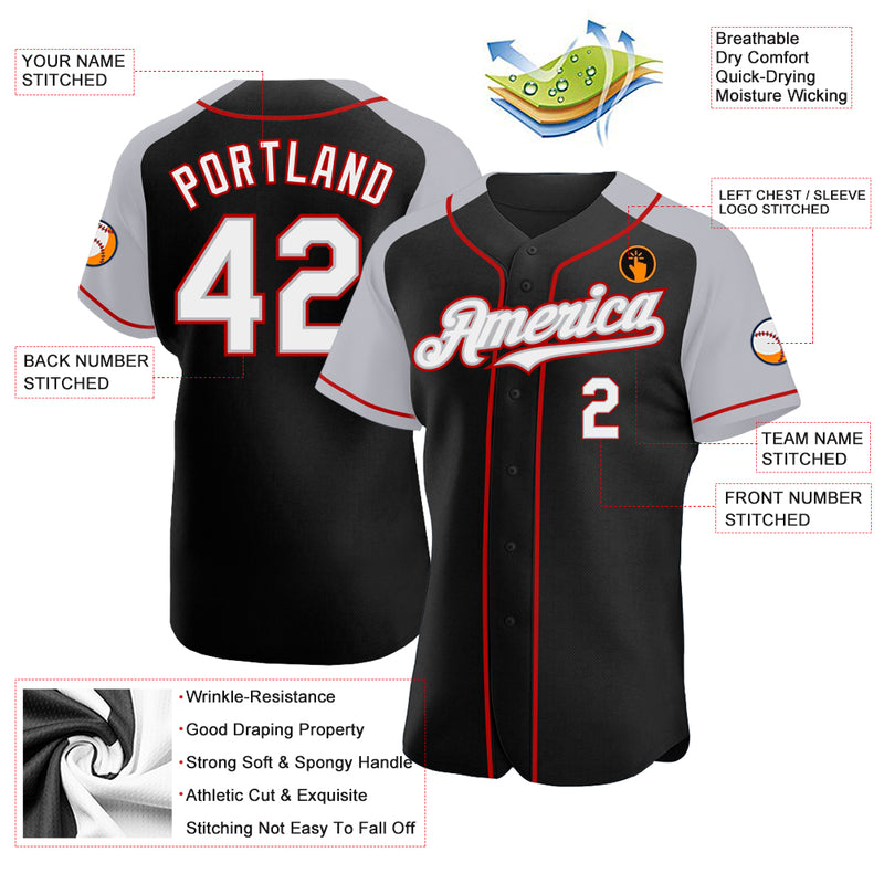 Custom Black White Gray-Red Authentic Raglan Sleeves Baseball Jersey