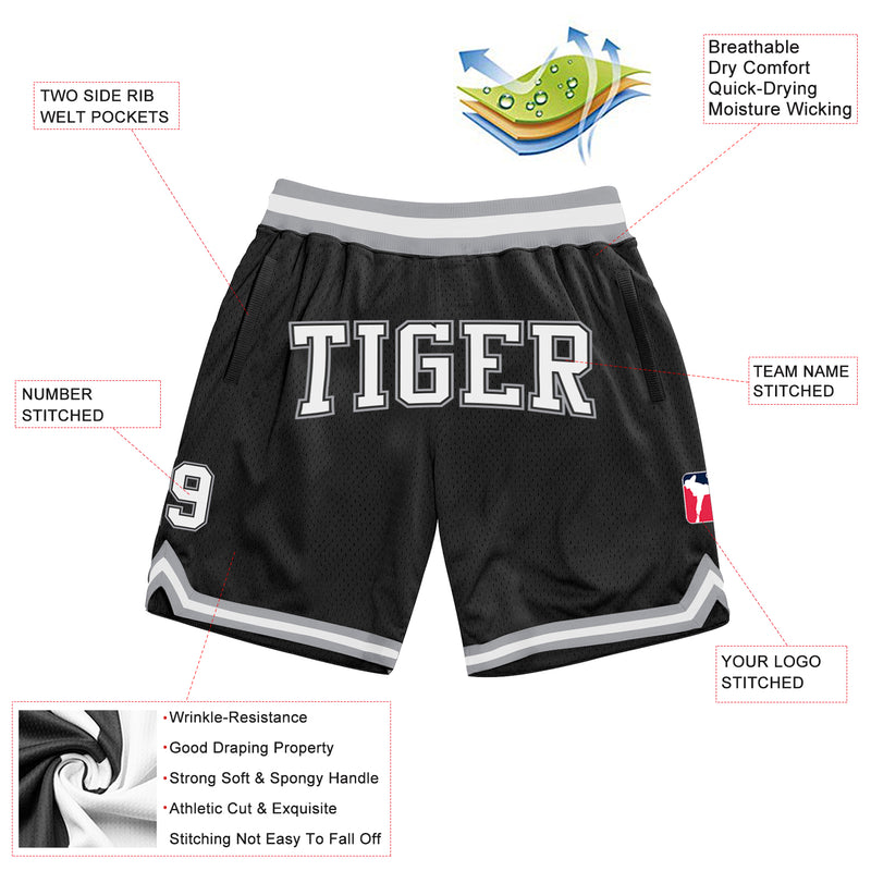 Custom Black White-Gray Authentic Throwback Basketball Shorts