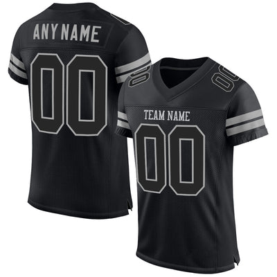 Custom Black Black-Gray Mesh Authentic Football Jersey