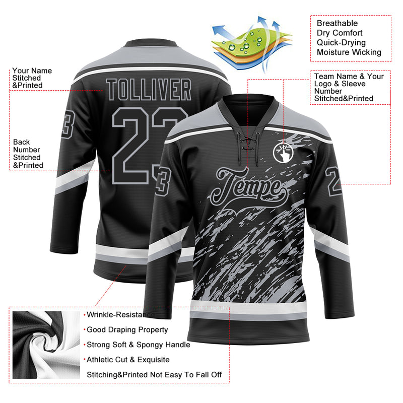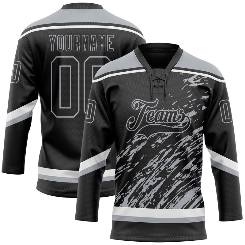 Custom Black Gray-White 3D Splash Art Hockey Lace Neck Jersey