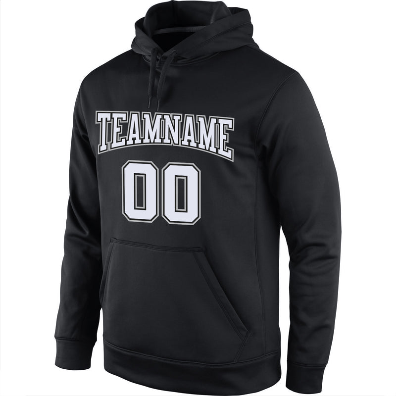 Custom Stitched Black White-Gray Sports Pullover Sweatshirt Hoodie
