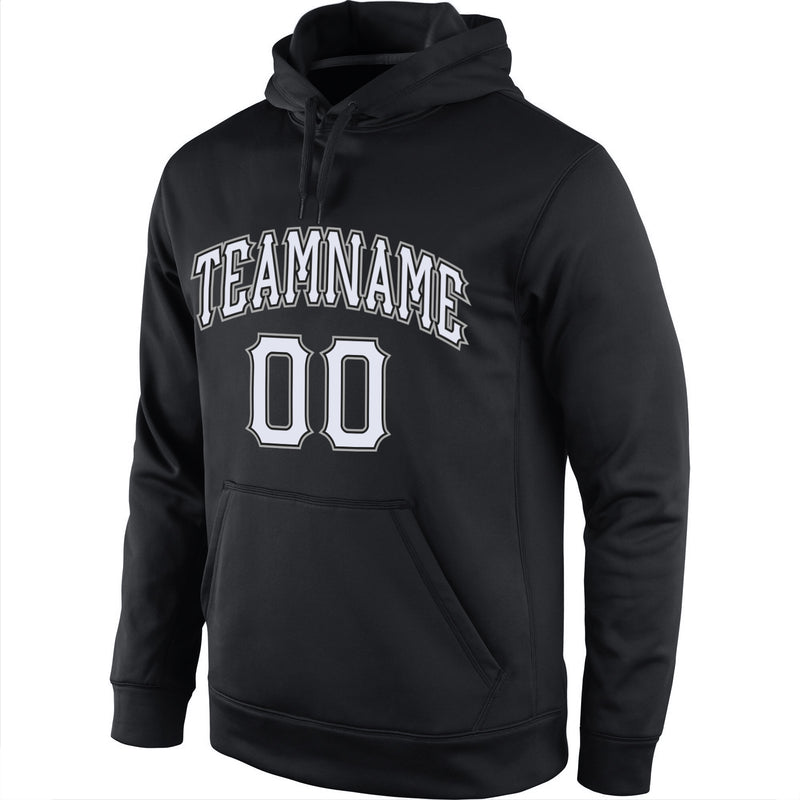 Custom Stitched Black White-Gray Sports Pullover Sweatshirt Hoodie