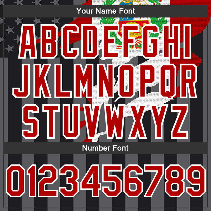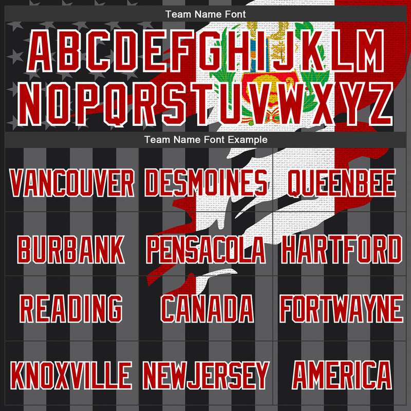Custom Black Red-Gray Peru Peruvian Flag 3D Bomber Full-Snap Varsity Letterman Hoodie Jacket