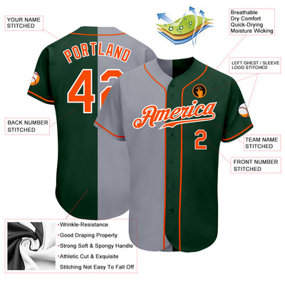 Custom Green Orange-Gray Authentic Split Fashion Baseball Jersey