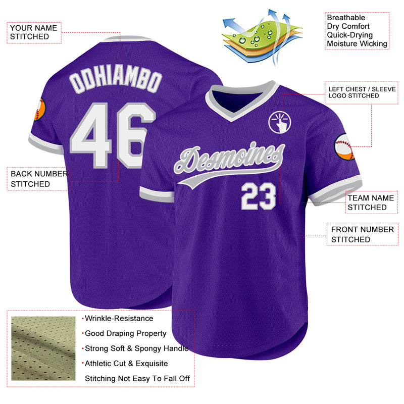 Custom Purple White-Gray Authentic Throwback Baseball Jersey