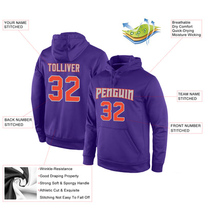 Custom Stitched Purple Orange-Gray Sports Pullover Sweatshirt Hoodie