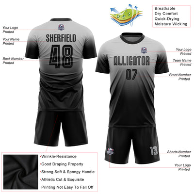 Custom Gray Black Sublimation Fade Fashion Soccer Uniform Jersey