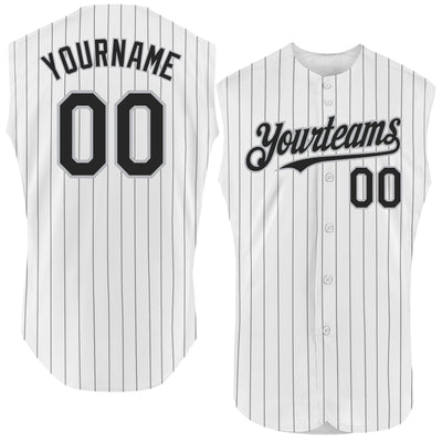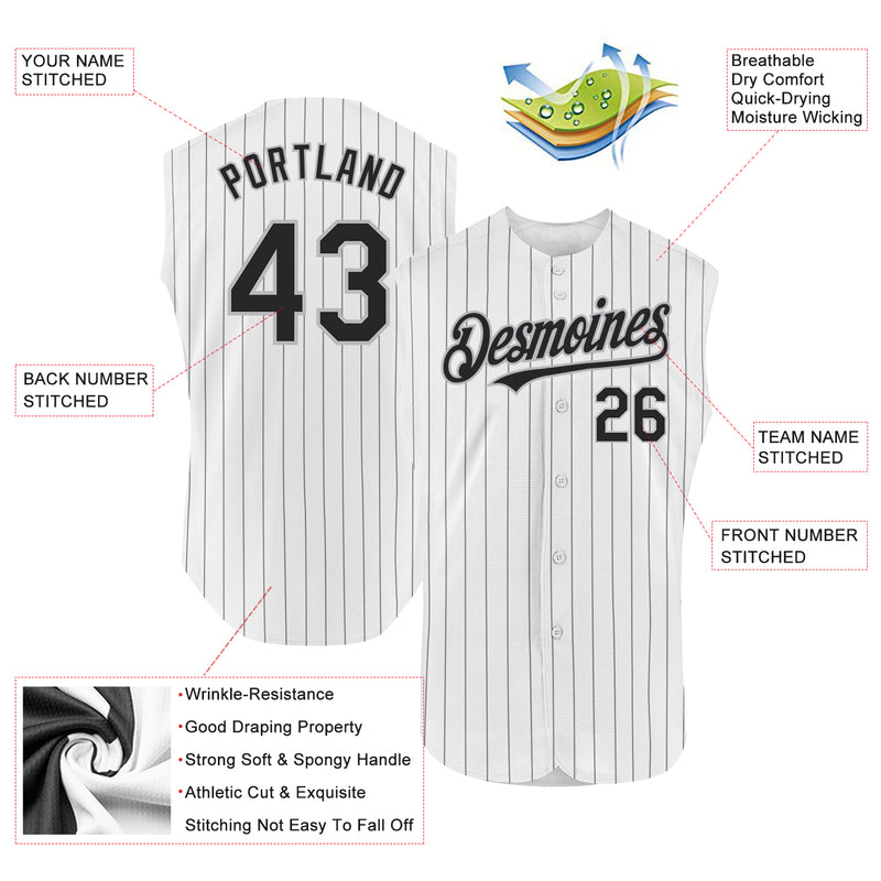 Custom White Black Pinstripe Gray Authentic Sleeveless Baseball Jersey