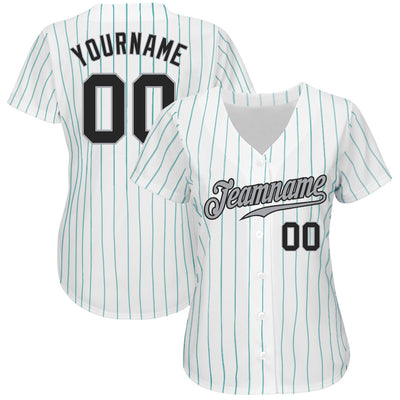 Custom White Teal Pinstripe Black-Gray Authentic Baseball Jersey