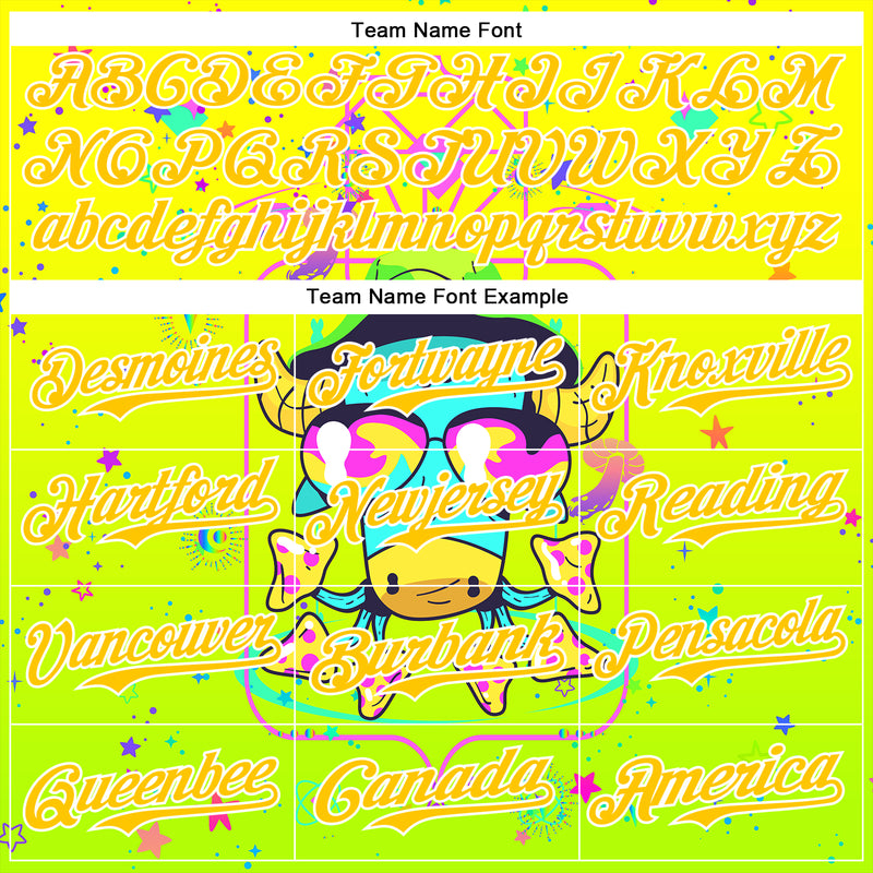 Custom Gold Yellow Green-White 3D Pattern Design Trippy Psychedelic Magic Mushrooms Authentic Baseball Jersey