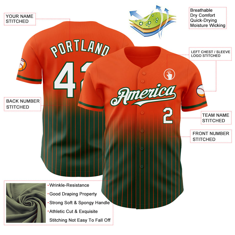 Custom Orange Pinstripe White-Green Authentic Fade Fashion Baseball Jersey
