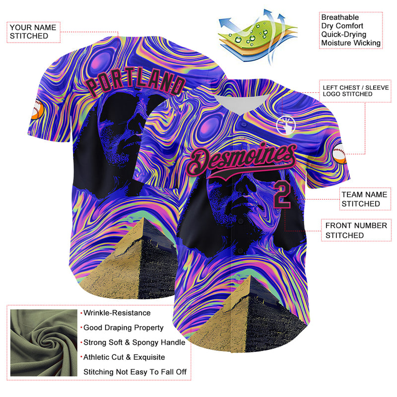 Custom Purple Black-Hot Pink 3D Pattern Design Rave Psychedelic Fluid Art Pyramid Authentic Baseball Jersey