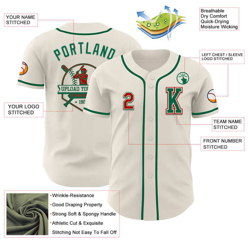 Custom Cream Red-Kelly Green Authentic Baseball Jersey