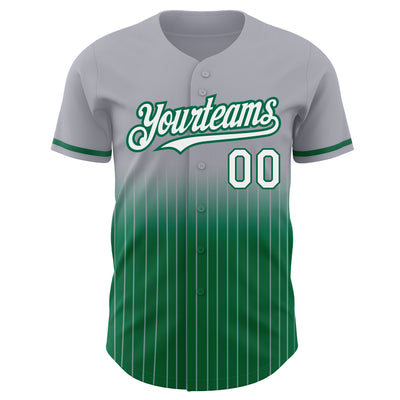 Custom Gray Pinstripe White-Kelly Green Authentic Fade Fashion Baseball Jersey