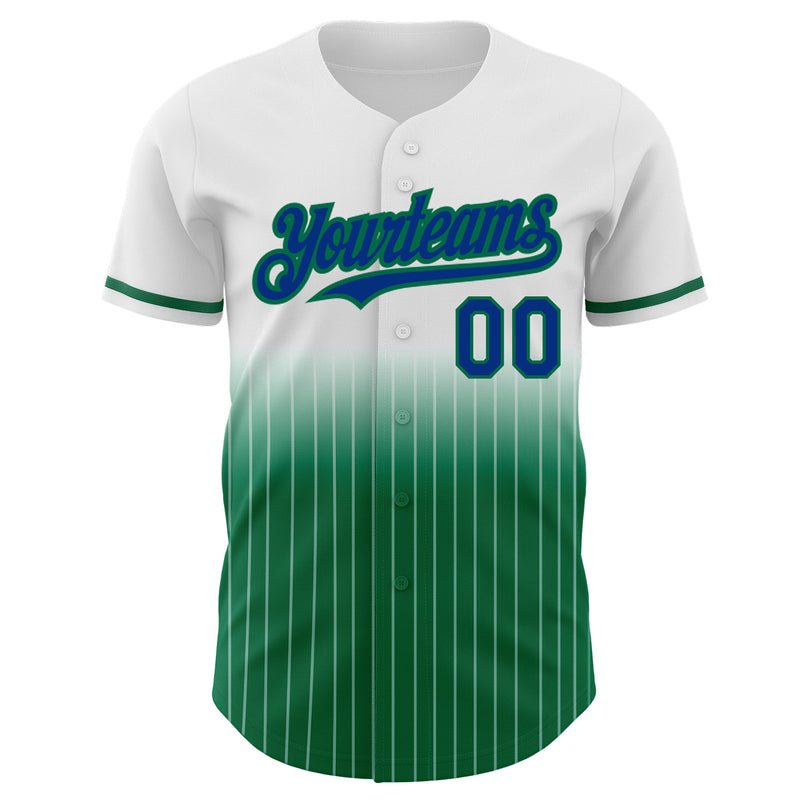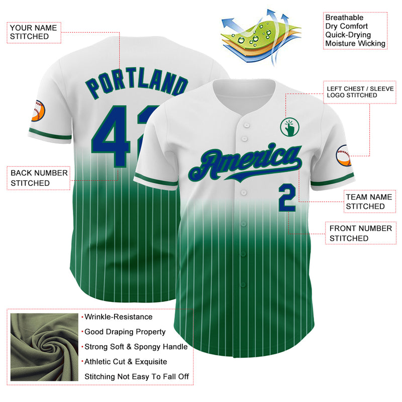 Custom White Pinstripe Royal-Kelly Green Authentic Fade Fashion Baseball Jersey