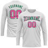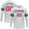 Custom White Pink-Kelly Green Long Sleeve Performance T-Shirt