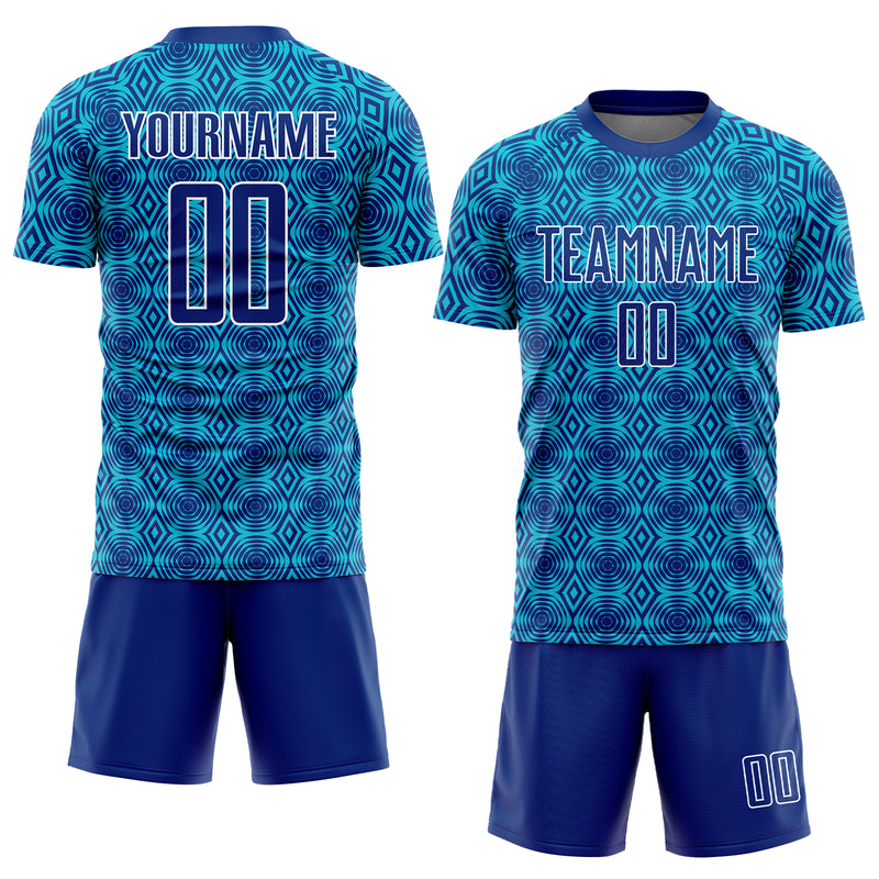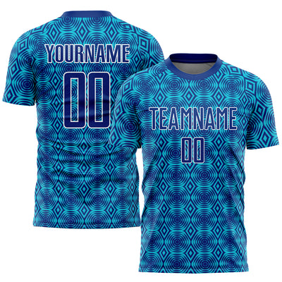 Custom Royal Lakes Blue-White Geometric Shapes Sublimation Soccer Uniform Jersey