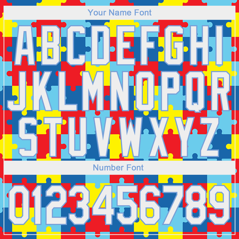 Custom Stitched Autism Supporter Awareness Puzzle Pieces White-Light Blue 3D Pattern Design Sports Pullover Sweatshirt Hoodie