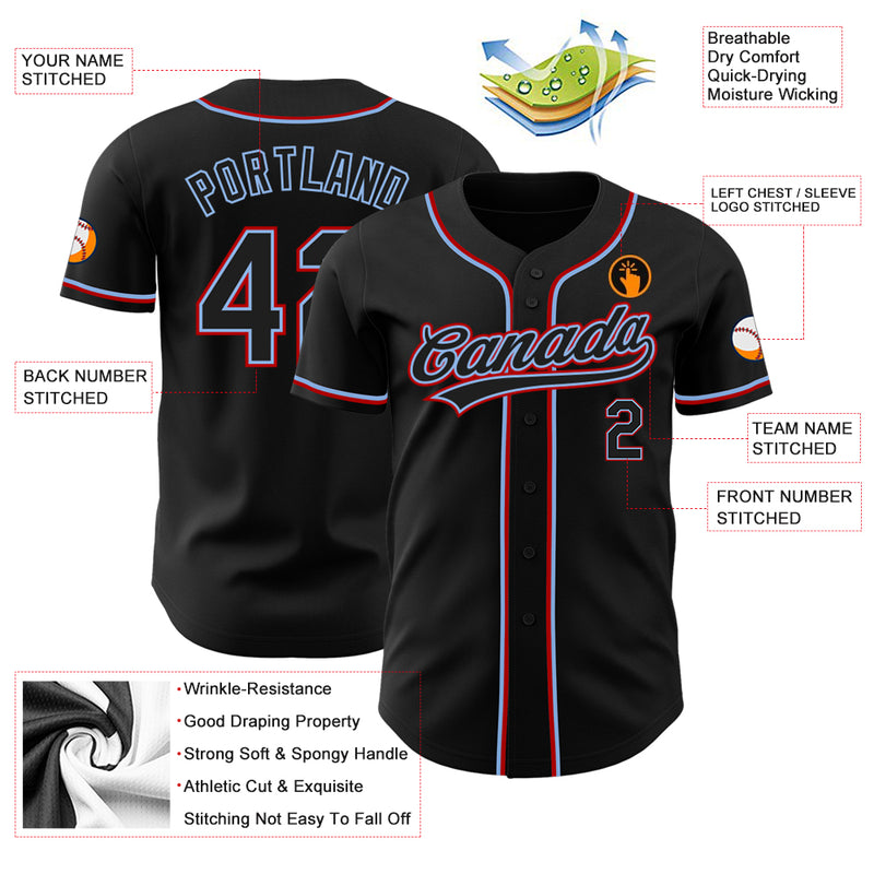 Custom Black Black Light Blue-Red Authentic Baseball Jersey