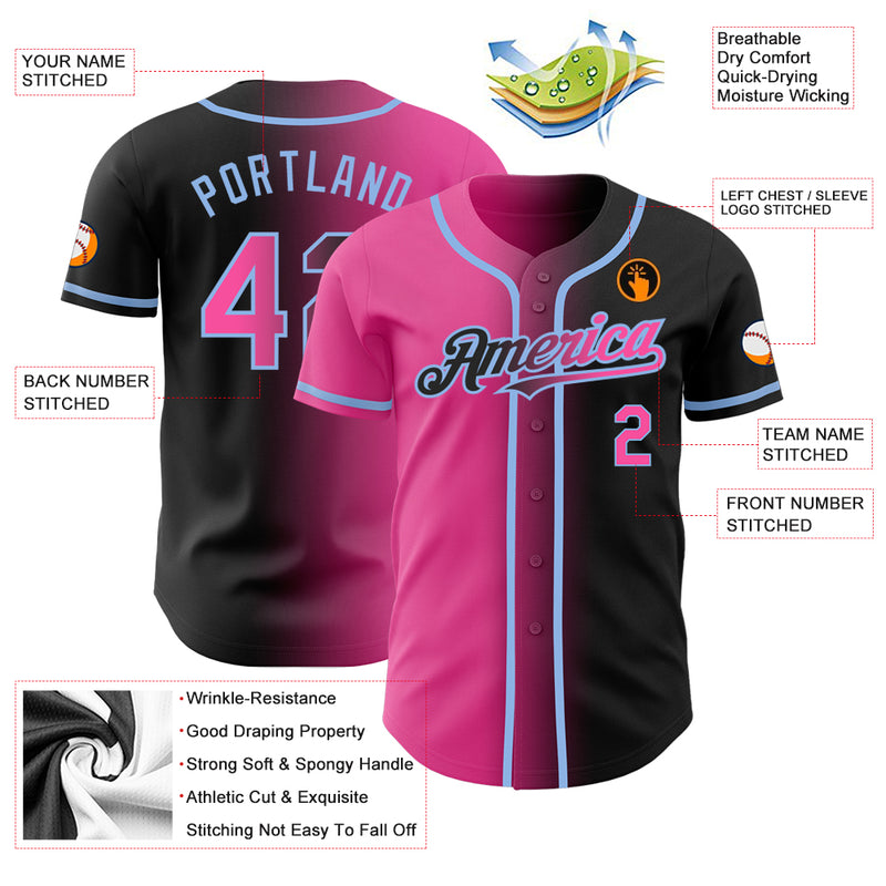 Custom Black Pink-Light Blue Authentic Gradient Fashion Baseball Jersey