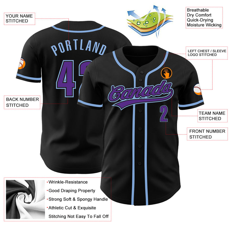 Custom Black Purpe-Light Blue Authentic Baseball Jersey