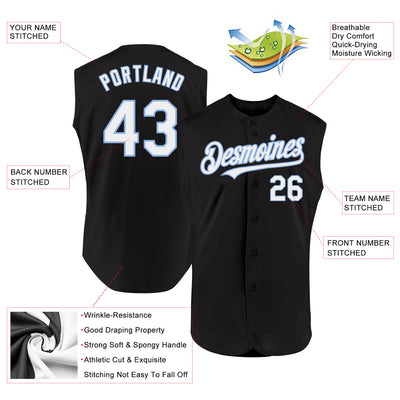 Custom Black White-Light Blue Authentic Sleeveless Baseball Jersey