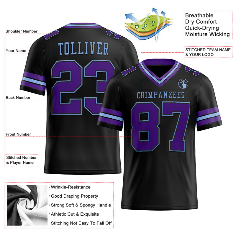Custom Black Purple-Light Blue Authentic Football Jersey