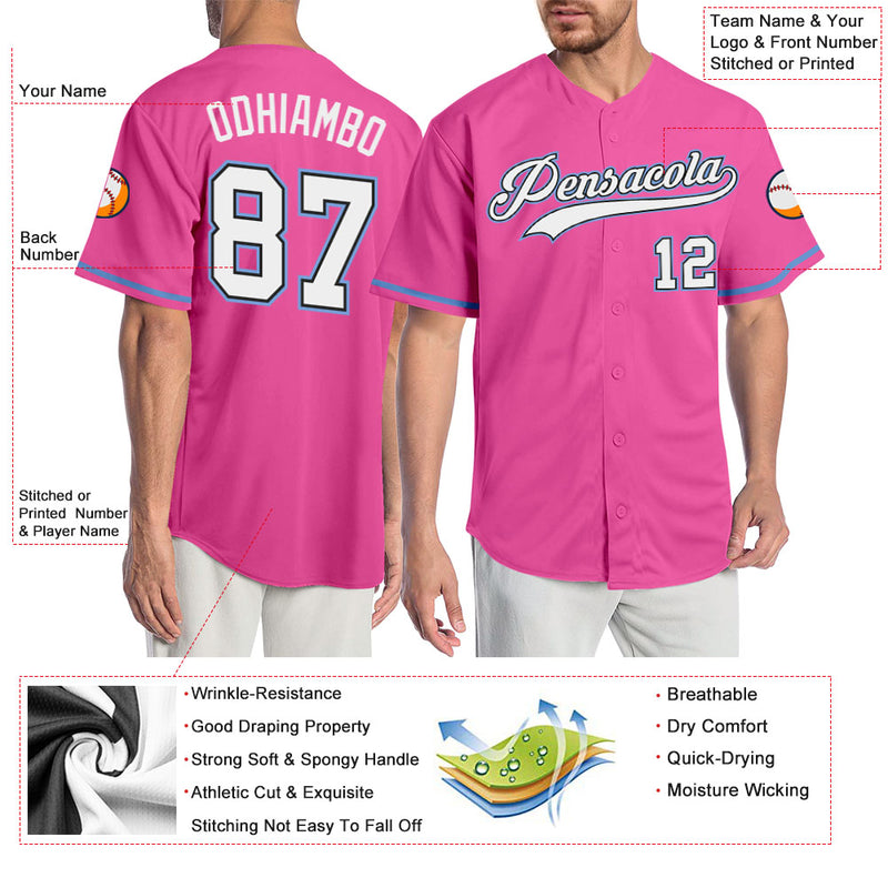 Custom Pink White-Light Blue Authentic Baseball Jersey