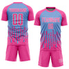 Custom Pink Light Blue-White Abstract Fluid Wave Sublimation Soccer Uniform Jersey