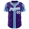 Custom Purple White-Light Blue 3 Colors Arm Shapes Authentic Baseball Jersey