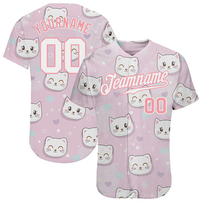 Custom Light Pink White-Light Pink 3D Pattern Design Cats Authentic Baseball Jersey