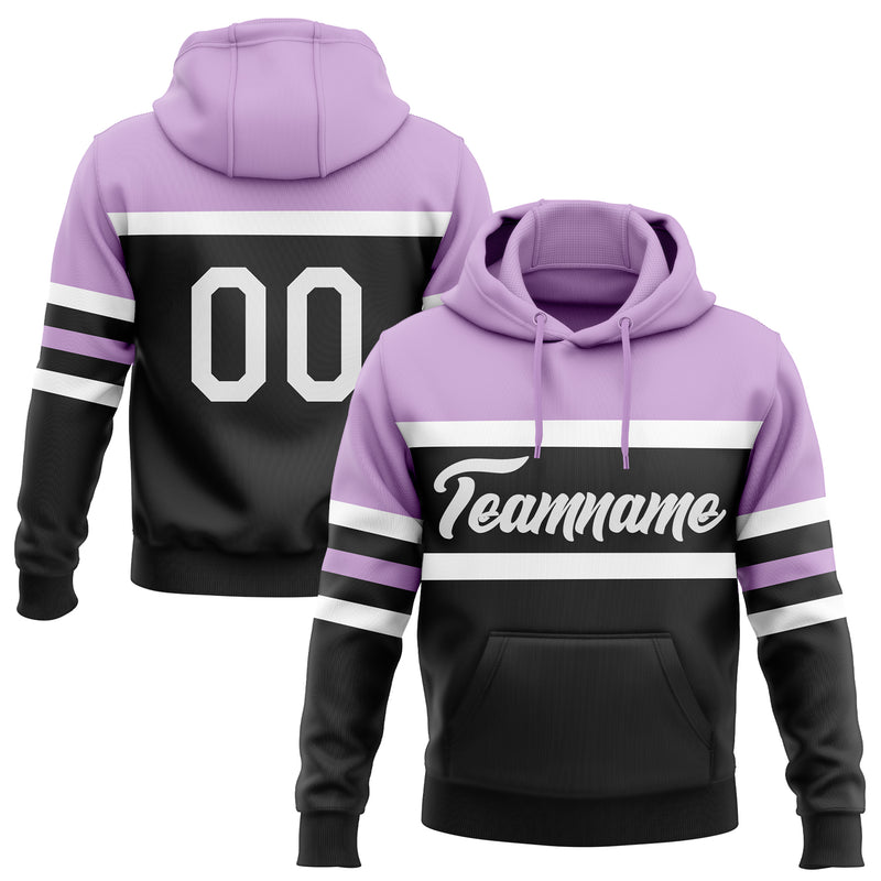 Custom Stitched Black White-Light Purple Line Sports Pullover Sweatshirt Hoodie