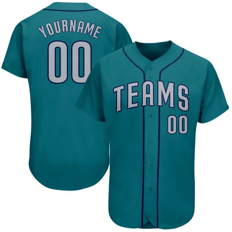 Custom Teal Gray-Navy Authentic Baseball Jersey