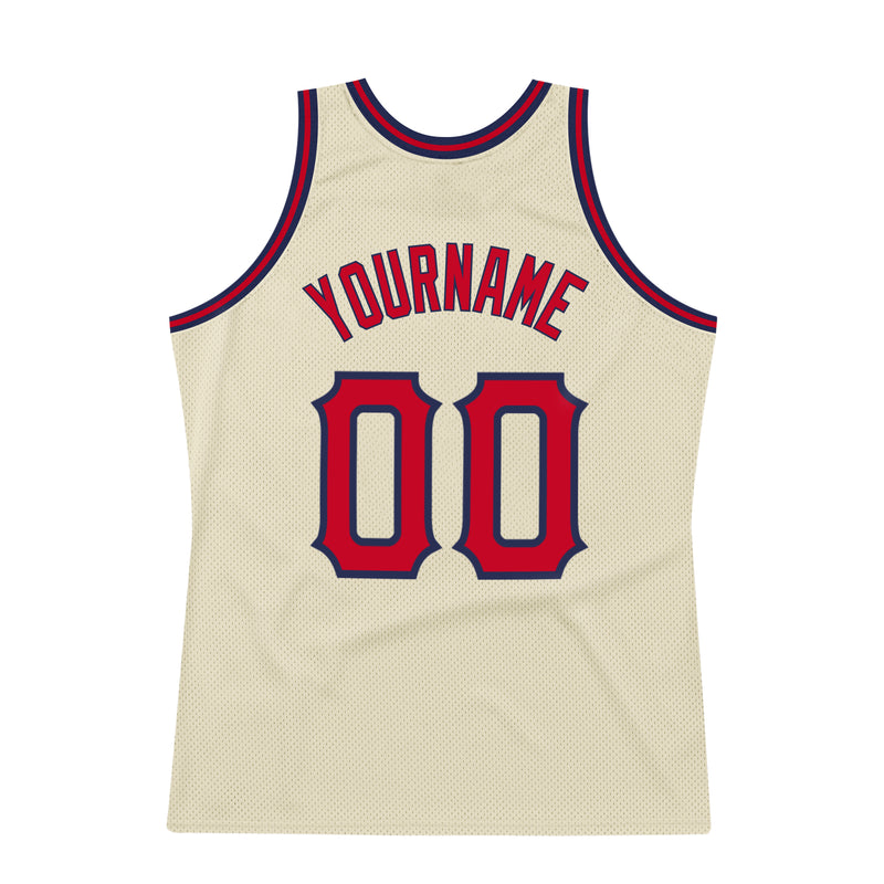 Custom Cream Red-Navy Authentic Throwback Basketball Jersey