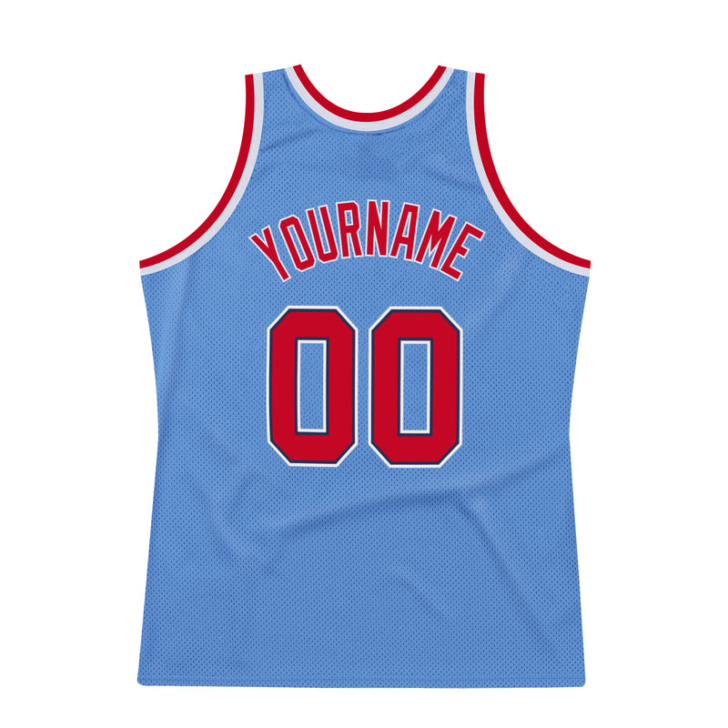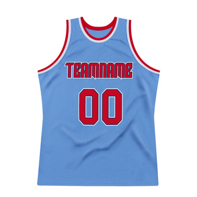 Custom Light Blue Red-Navy Authentic Throwback Basketball Jersey