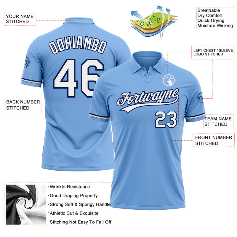 Custom Light Blue White-Navy Performance Vapor Golf Polo Shirt