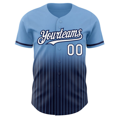 Custom Light Blue Pinstripe White-Navy Authentic Fade Fashion Baseball Jersey
