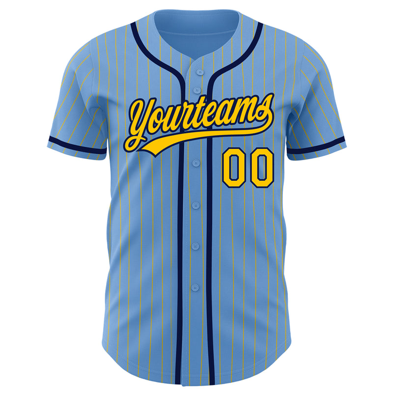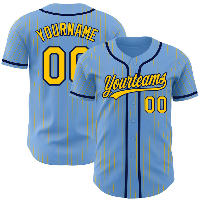 Custom Light Blue Yellow Pinstripe Navy Authentic Baseball Jersey
