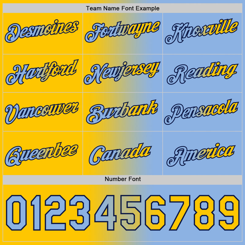 Custom Light Blue Yellow-Navy Gradient Fashion Performance T-Shirt