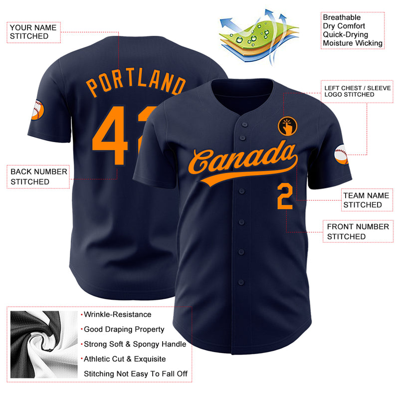 Custom Navy Bay Orange-Navy Authentic Baseball Jersey