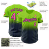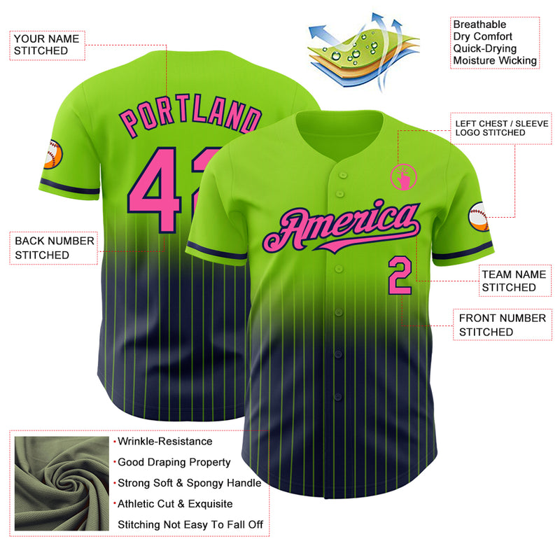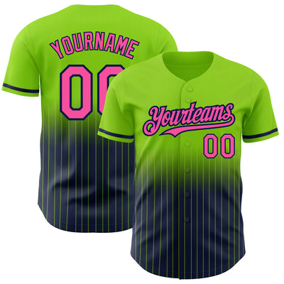 Custom Neon Green Pinstripe Pink-Navy Authentic Fade Fashion Baseball Jersey